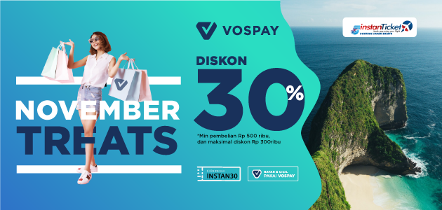 - Masukkan kode promo INSTAN30 di HALAMAN VOSPAY untuk penanda transaksi mendapatkan diskon